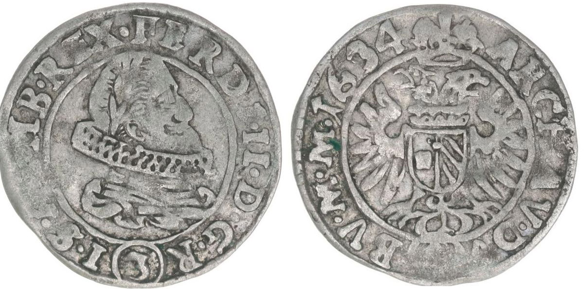 3 Krejcar 1634, Praha-Schuster, J.31b, MKČ.763