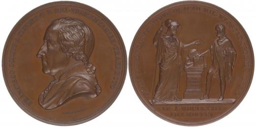 J.M.Scharff - premijní medaile pro studenty, 1846 Poprsí zleva, opis / Minerva předává mladíkovi symboly moudrosti, Sign., Bronz 48 mm, Don.3504, Ho.5487, MN.671, MZČ.143/1