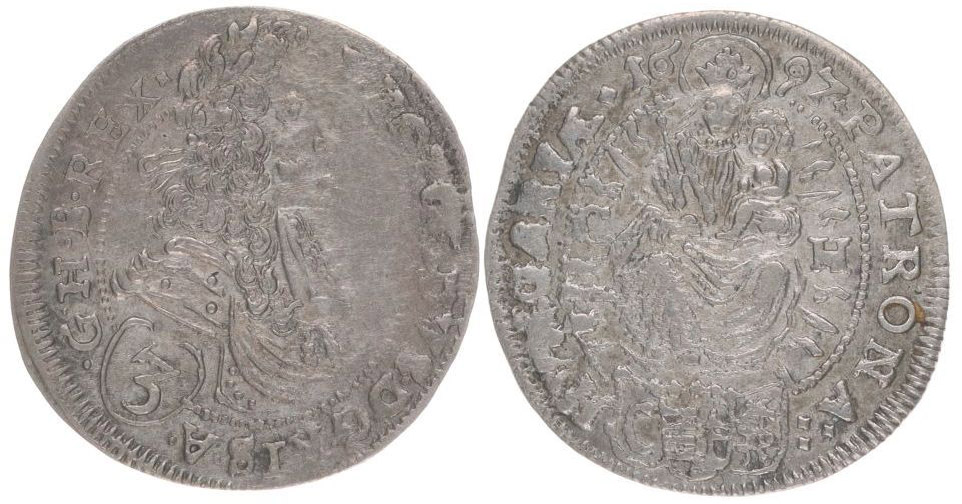 3 Krejcar 1697 C-H, Bratislava-Hunger, Nech.1660, Hus.1478, Her.1633
