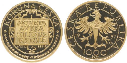 1000 Koruna 1997 - 3 Dukát Slezských stavů (0.1 Unce - Au 999.9/1000)_orig.etue + kapsle + certifikát