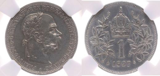 1 Koruna 1897 b.zn._NGC: UNC Details