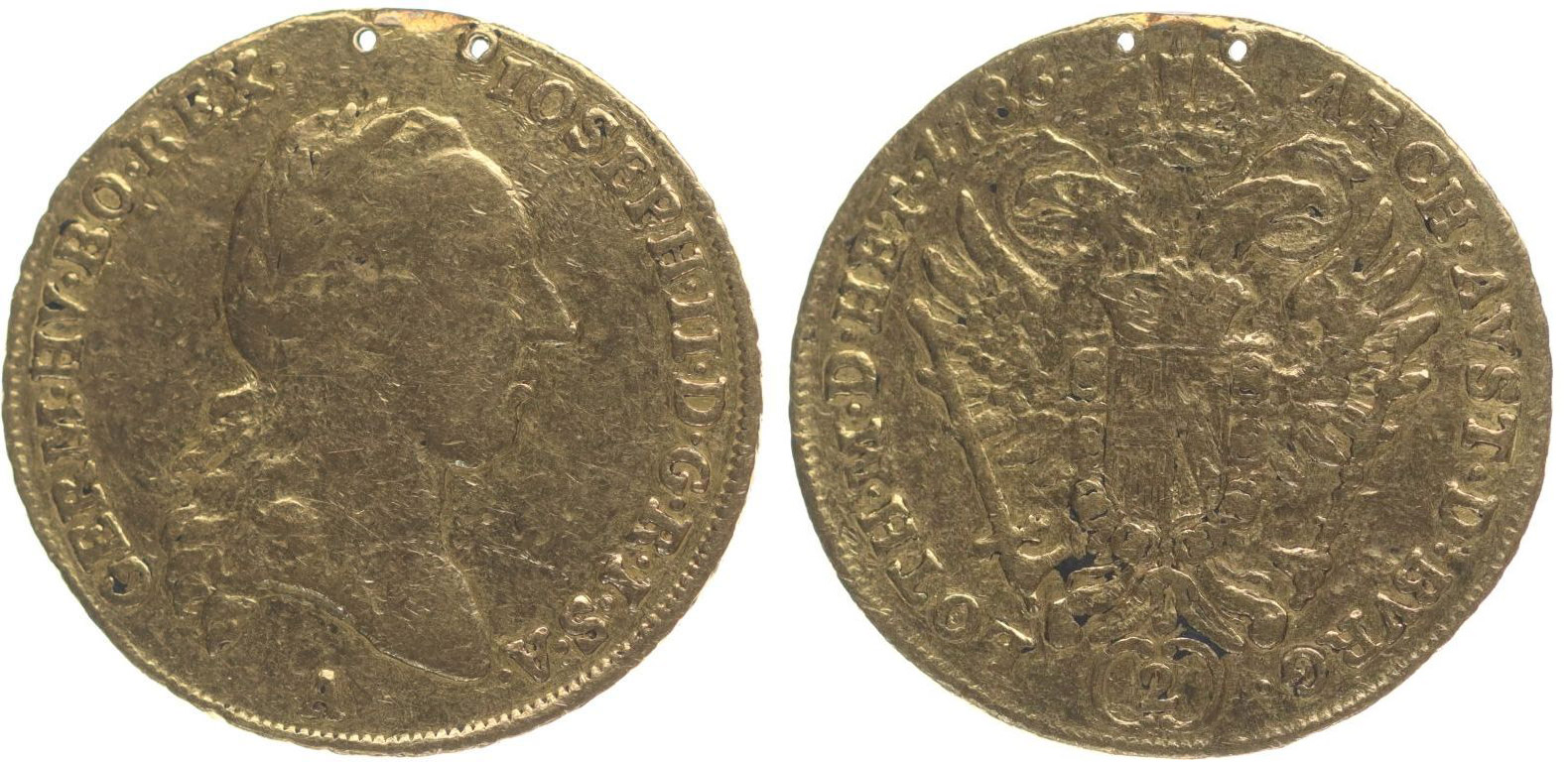 2 Dukát 1786 A, Vídeň, P.17_dvě dírky po korunce