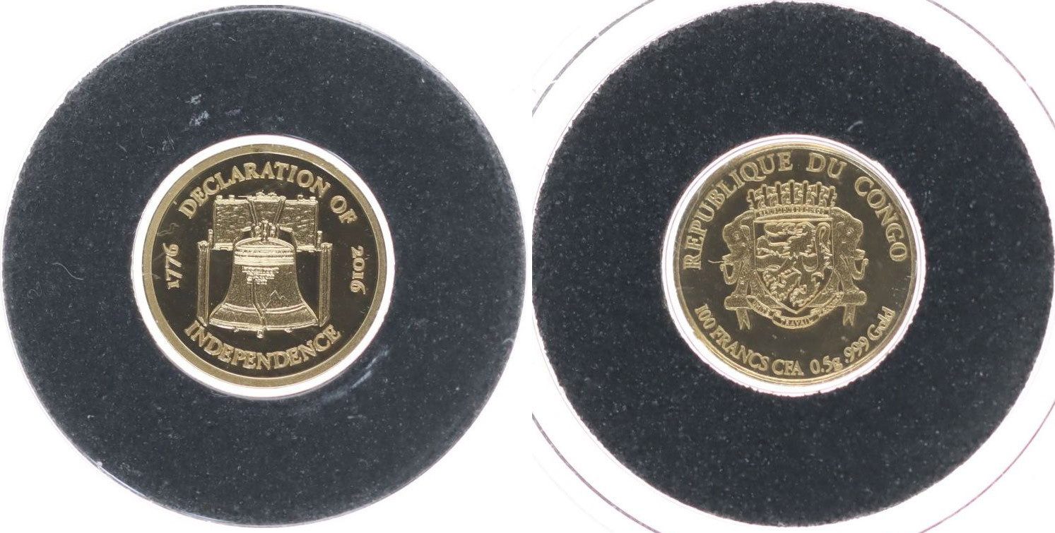 100 CFA Frank 2016 - zvon svobody, Au 999, 11 mm, 0,50 g_orig.kapsle
