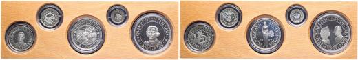 Sada mincí 2000, 1000, 500, 200, 100 Peseta 1989 KM.PS10 (834-838), vyd.v r.1992 k 500.výr.objevení Ameriky _orig.dřevěná repre etue + kapsle + certifikát celk. 5 ks