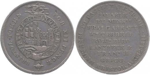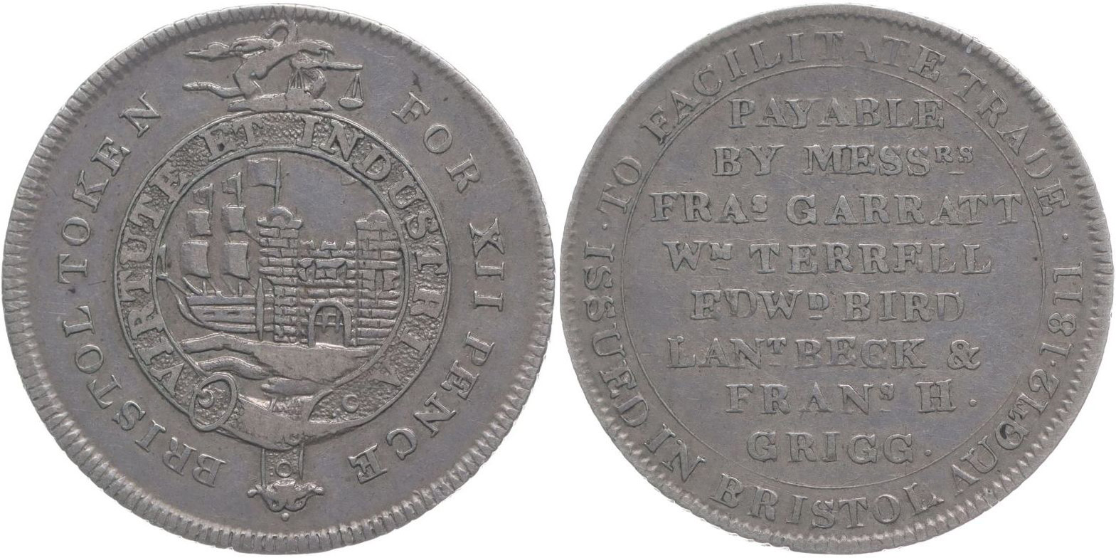 Bristol - Comercial Token Bank Co. Shilling (XII pence) 1811 Ag 25 mm, Whitt.23-9_R!
