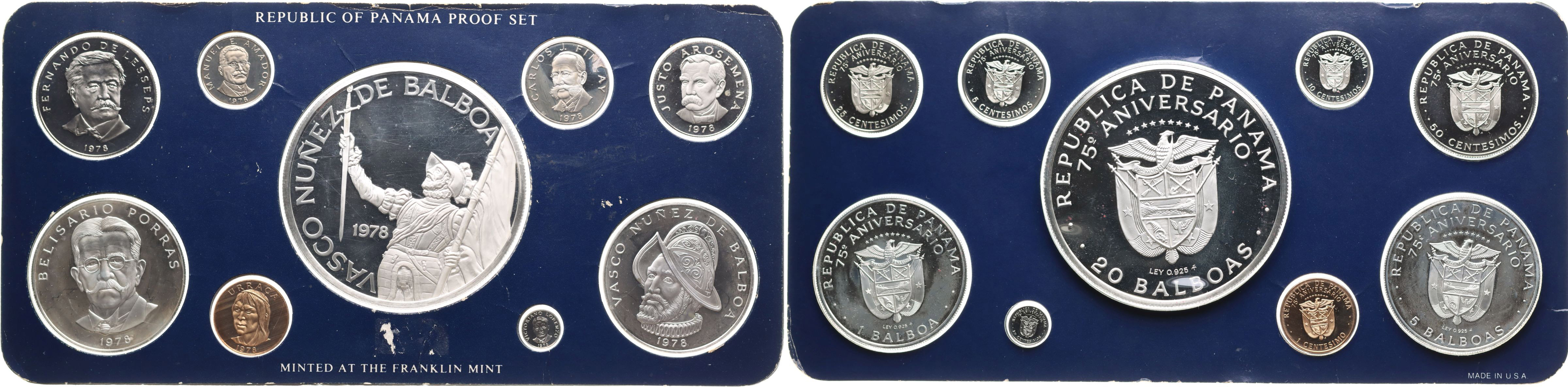 Sada 20, 5, 1 Balboa, 50, 25, 10, 5,2 1/2, 1 Centimo 1978 - celk.191.44 g Ag, KM.PS20_orig.etue 9 ks
