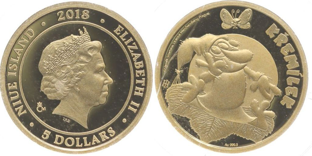 5 Dolar (1/10 Unce) 2018 Portrét královny Alžběty zprava, opis / Křemílek, opis ryz.999/1000, Au 16 mm, 3,13 g