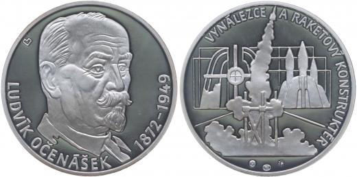 Ludvík Očenášek - medaile k 145.výr. narození b.l. (2017) Poprsí mírně zprava, opis / raketová sila, letící raketa, opis Ag 999, 37 mm, 31,05 g (unce), čísl.027, (náklad 326 ks) _orig.etue + kapsle + certifikát