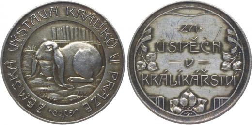 Nesign. - zemská výstava králíků v Praze, b.l. Ve středu králík, opis / 4řádk.nápis Za úspěch v králíkářství, Punc. Ag 39 mm, 12 g