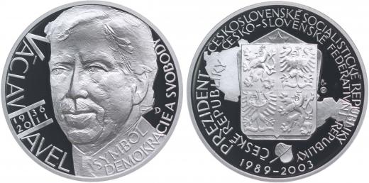 V.Dostál - Václav Havel - medaile k úmrtí v r. 2011 Poprsí mírně zleva, opis / státní znak, na mapě republiky dvojitý opis Sign.D., Punc.999, Ag 37 mm, 31,1 g_orig.etue + kapsle