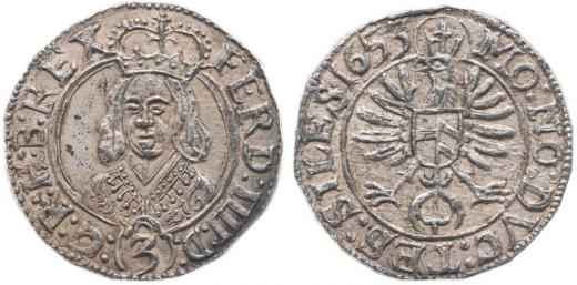 Ferdinand IV. - 3 krejcar 1653 Těšín 21,5 mm, 3,31 g, Nech.neuvádí