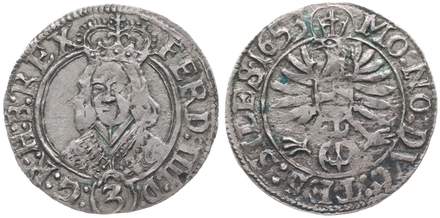 Ferdinand IV. - 3 krejcar 1653 Těšín 21,5 mm, 1,66 g, Nech.neuvádí