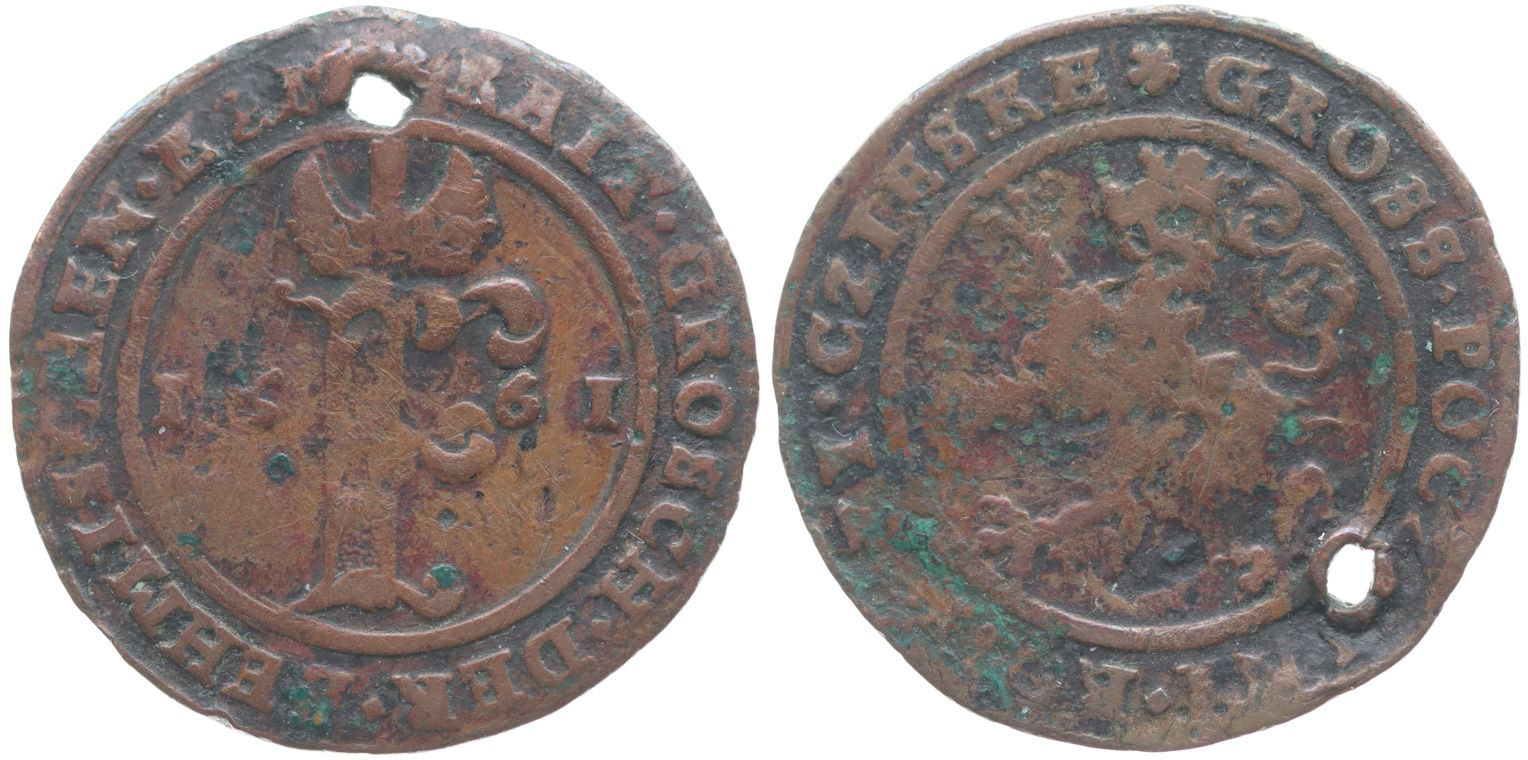 Početní groš 1561 K.Hora-Lídl+Podivický, Mrš.6b, Markl.1229 _dírka R!