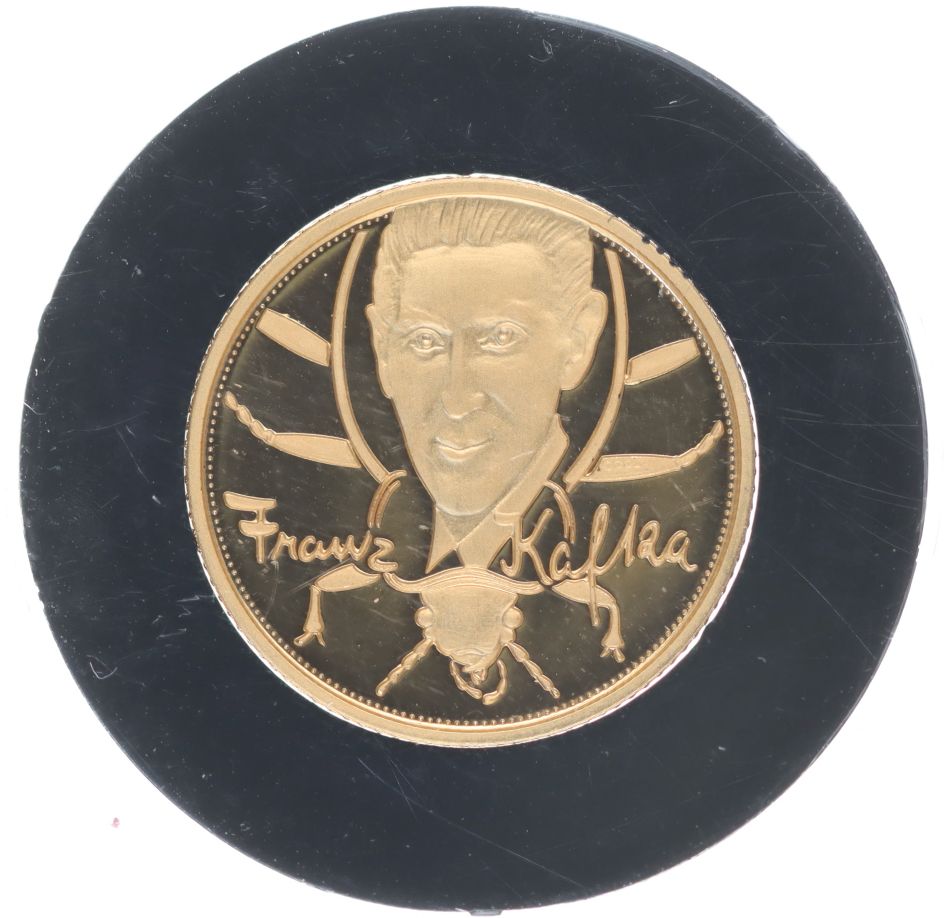 Franz Kafka, b.l. z cyklu Magická Praha Sign.Oppl, Punc.585, Au 18 mm, 2 g_orig.kapsle
