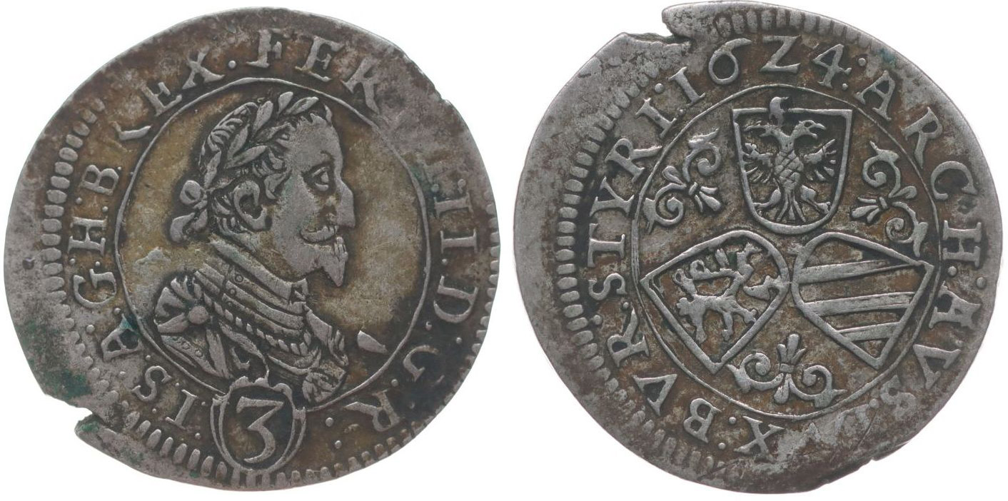 3 Krejcar 1624, Štýrský Hradec, Her.1075_dr.okr.raž.
