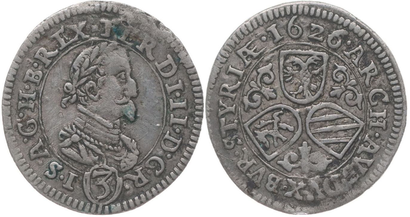 3 Krejcar 1626, Štýrský Hradec, Her.1079a, var.G.R.-I.