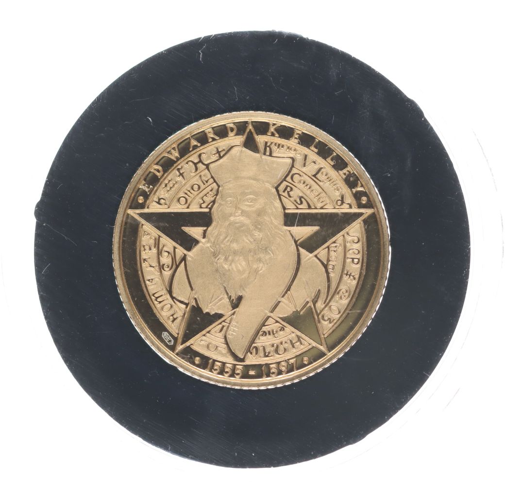 Magistr Kelley, b.l. z cyklu Magická Praha Sign.Oppl, Punc.585, Au 18 mm, 2 g_orig.kapsle