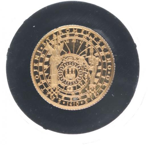 Staroměstský orloj, b.l. z cyklu Magická Praha Sign.Oppl, Punc.585, Au 18 mm, 2 g_orig.kapsle