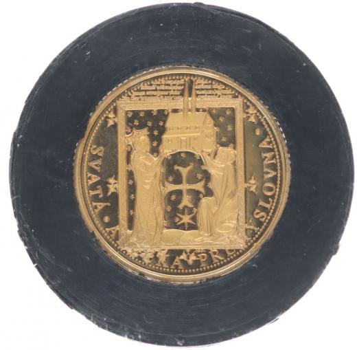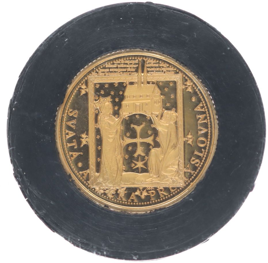 Sv.Anežka - ve znamení rudé hvězdy, b.l. z cyklu Magická Praha Sign.Oppl, Punc.585, Au 18 mm, 2 g_orig.kapsle