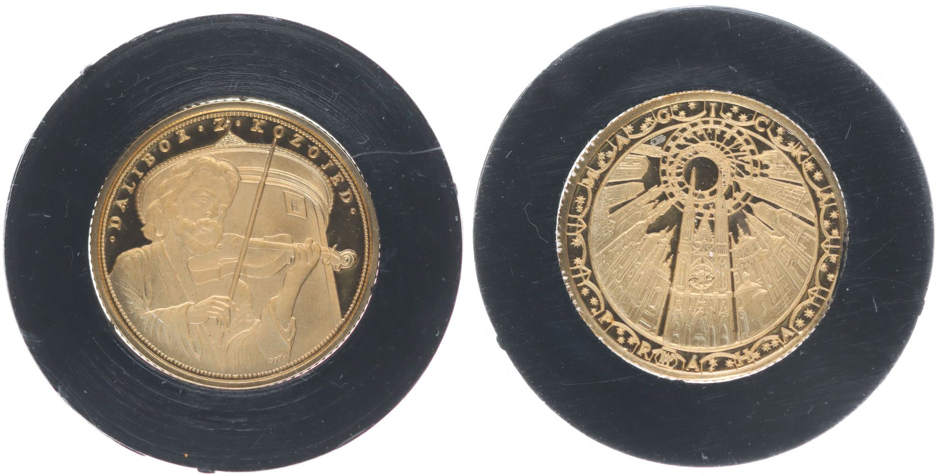 Věž Daliborka, b.l. z cyklu Magická Praha Sign.Oppl, Punc.585, Au 18 mm, 2 g_orig.kapsle
