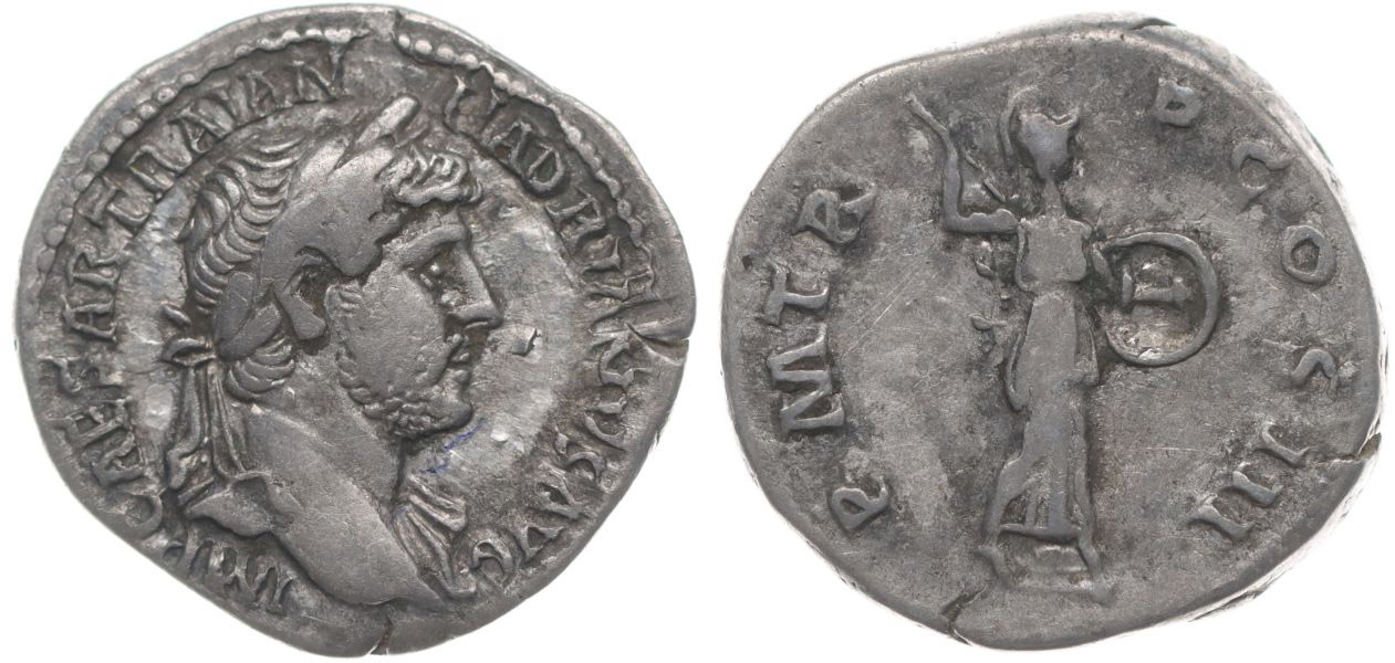 AR Denár, Rv:"P.M.TR.P.COS.III.", stojící Minerva zprava S.993pod., K.32.90.10, RIC.65