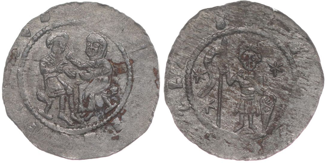Denár, F.neuvádí, Ca.532 (na Rv. 3 hvězdy, var.1), Št.499.2 2 hvězdy u praporce, 1 za zády_č.ned.