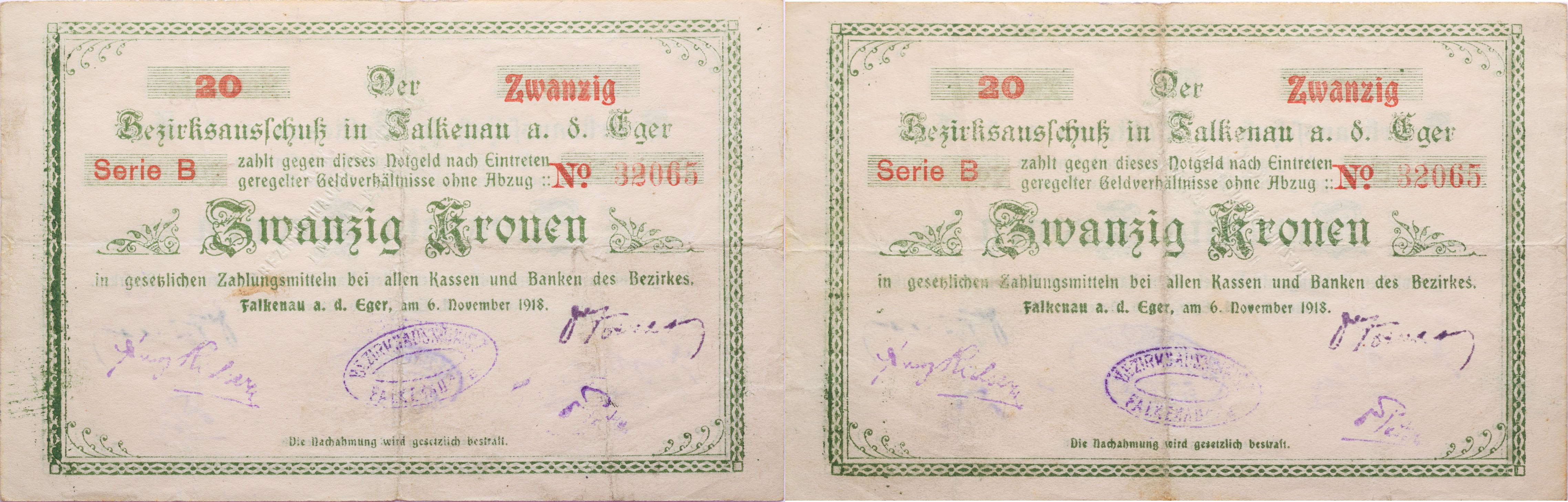 Falknov (Falkenau a.d.Eger) - 20 K.6.11.1918, sér.B, čís.32065 DH.44.2.7a