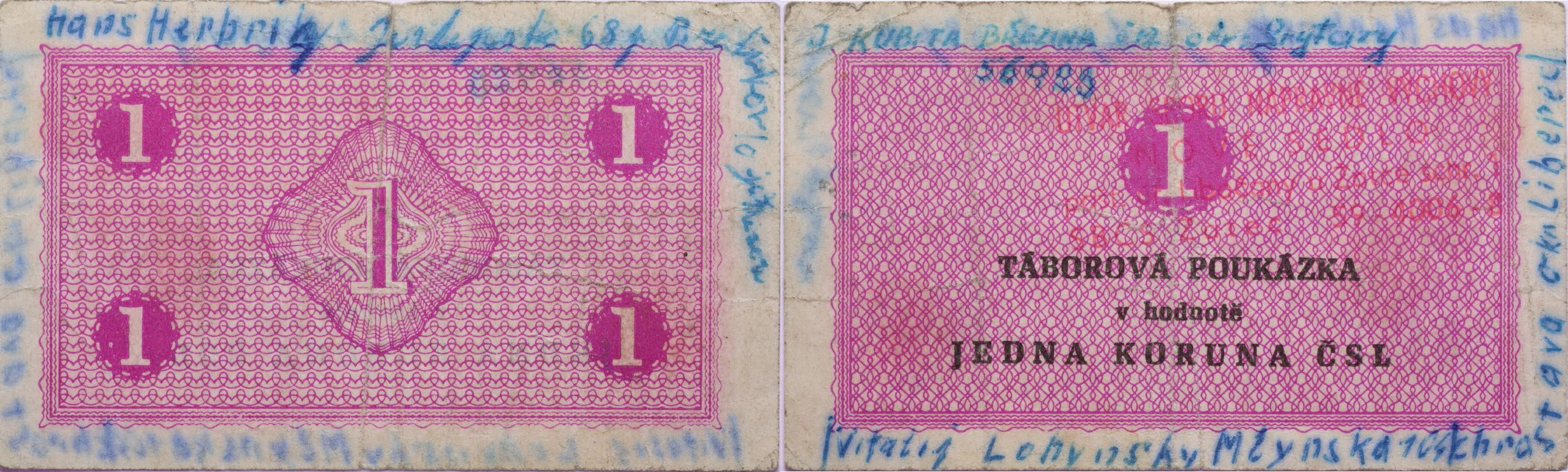 Libočany u Žatce - 1 Kčs ČSL, b.l. _okraje popsané modrou tužkou