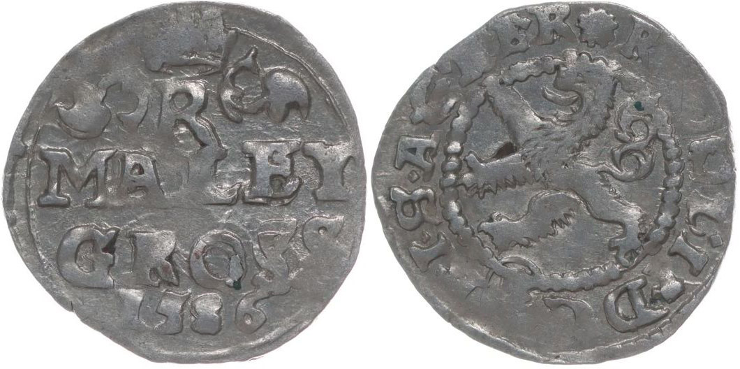 Malý groš 1586, K.Hora-Šatný, HN.1b (opis 7a), Ja.6b_dr.ned.