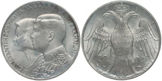 30 Drachma 1964 - svatební, Ag, KM.87
