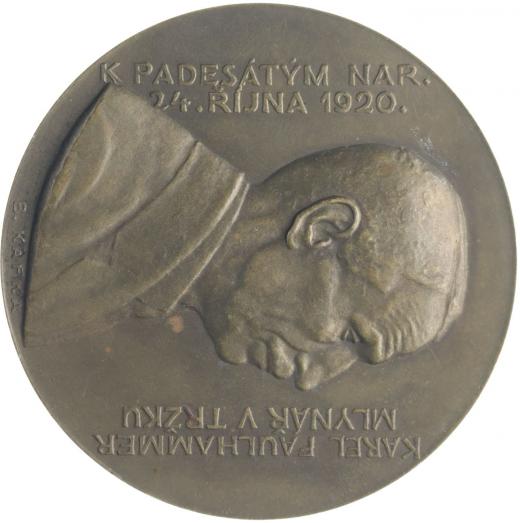 Karel Faulhammer - mlynář v Tržku - k padesátým nar. 24.října 1920 Poprsí zprava, dvojitý opis, Bronz 55 mm, 59 g_jednostr.