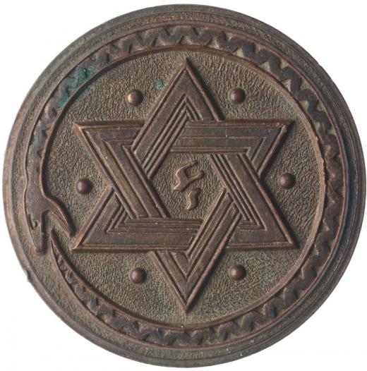 Nesign. - židovská hvězda, po obvodu had ve tvaru ornamentu, b.l. Bronz 44 mm_jednostzranná