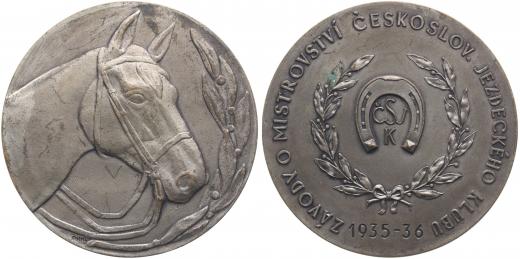ČSR - závody o mistrovství českoslov. jezdeckého klubu 1935 - 36 Hlava koně zprava / uprostřed podkova s "ČSJK" ve věnci, opis Sign.Pichl, Postř.bronz 49 mm