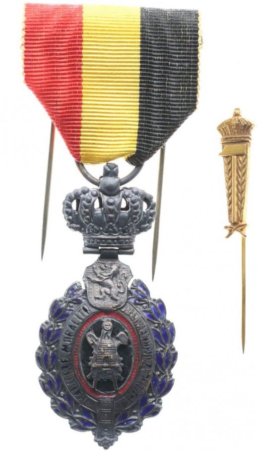 Pracovní vyznamenání "Habilete Moralite" 2.st. - starší vydání oválná medaile převýšená korunkou, Sign.H.Wairevens&Cle Bruxelles _orig.stuha + miniatura odznaku 25x8,5 mm v orig.etui celk.2 ks