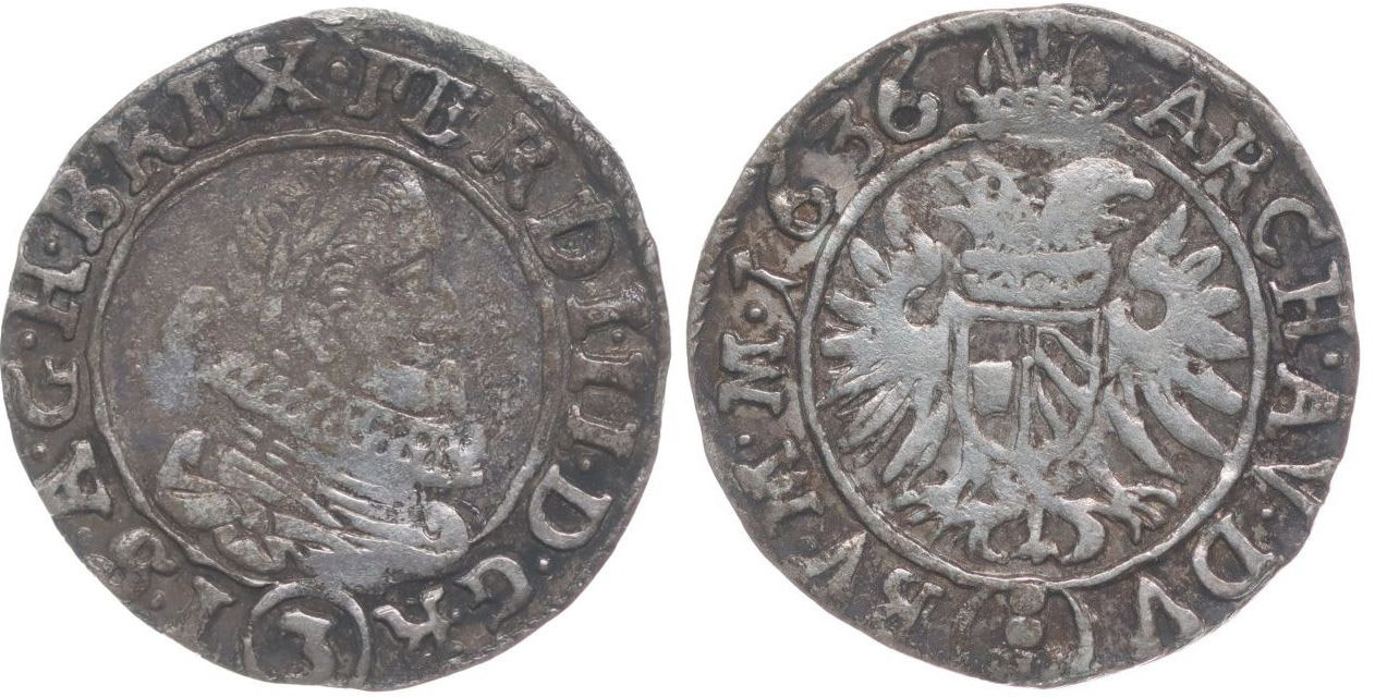 3 Krejcar 1636, Praha-Schuster, J.31c, MKČ.763, Her.1160