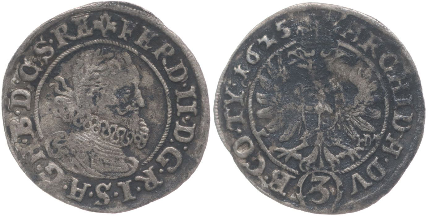 3 Krejcar 1625 HDM, Zaháň, MKČ.133, Her.1315_RR!
