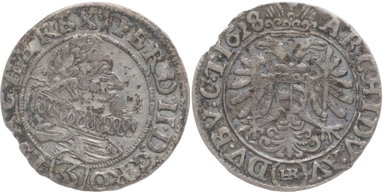 3 Krejcar 1628, Vratislav-Riedel+Ziesler, MKČ.1018, Her.1284, Fr.219 _dr.okraj