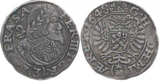 3 Krejcar 1648, Praha-Wolker, J.3b, MKČ.1181
