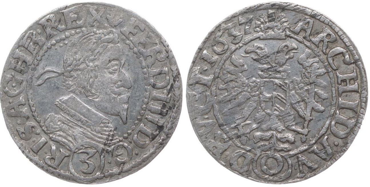3 Krejcar 1637, Olomouc-Sonnenschein, MKČ.1239, Her.788a