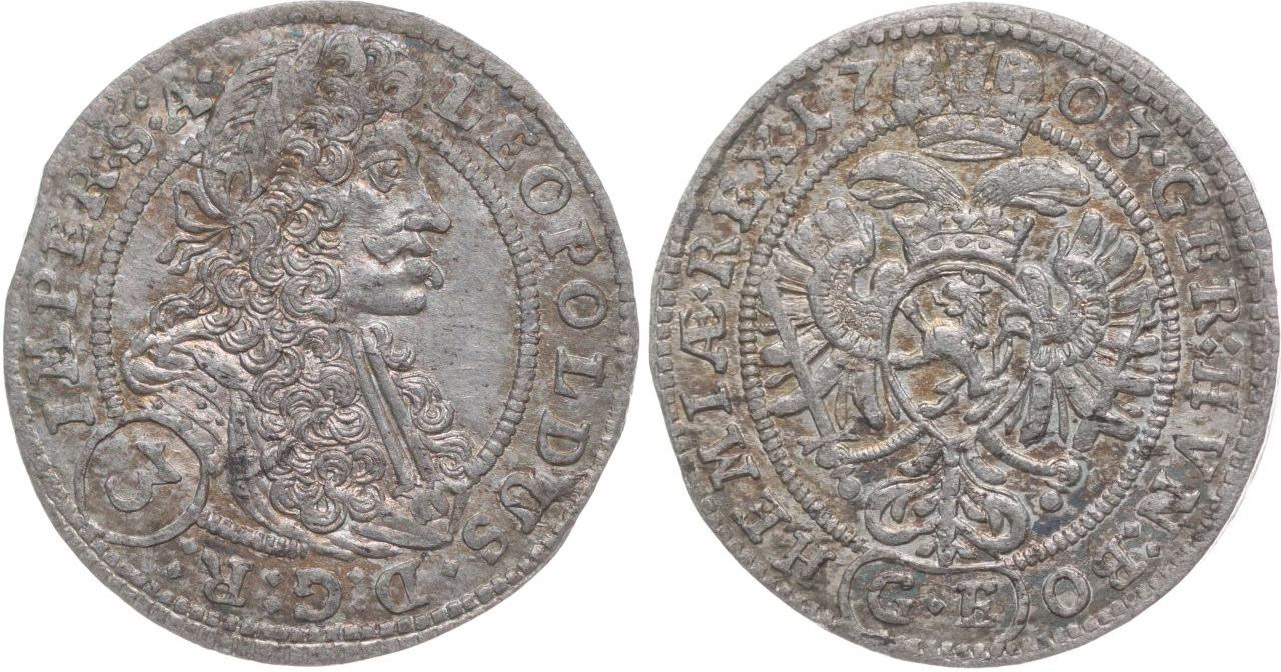 3 Krejcar 1703, Praha-Egerer, Nech.218, MKČ.1429, Ja.12d