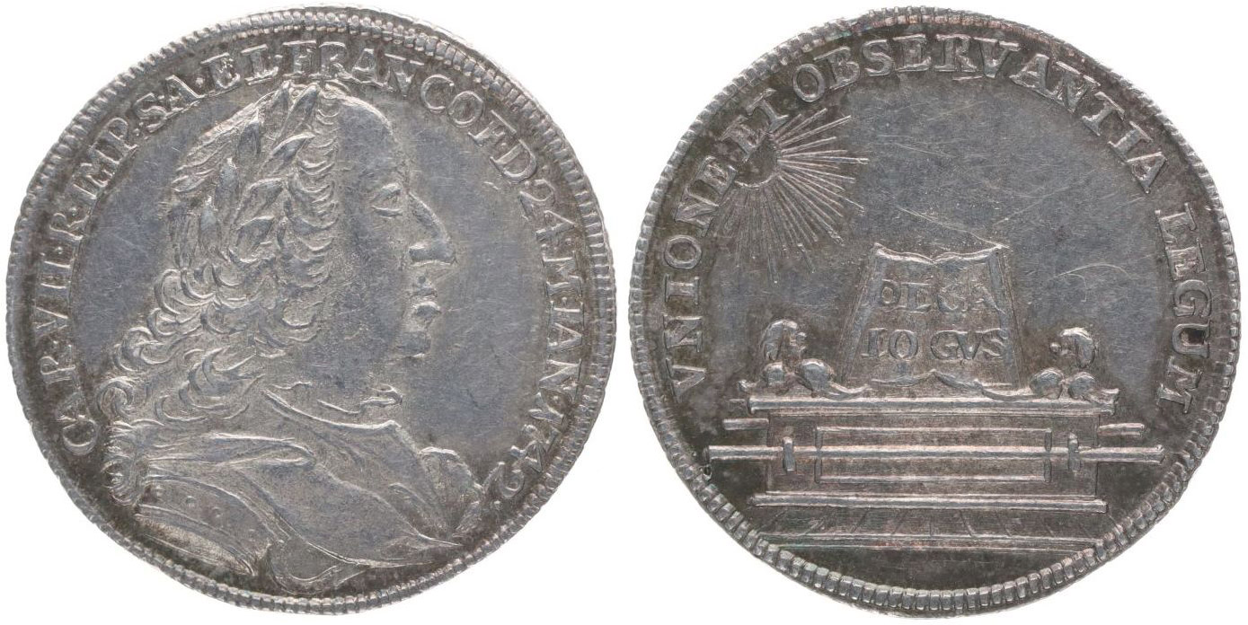 Malý žeton na volbu římského císaře 24.1.1742 ve Frankfurtu Portrét císaře zprava, opis / truhla s nápisem, nad ní slunce Ag 22 mm, 2.41 g, Nov.XII/B-30b, LG.XI/80, Ho.2765, För.250_R!