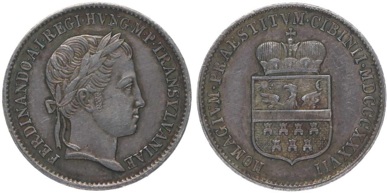 Větší peníz na holdování v Sedmihradsku, 1837 Portrét, opis / korunovaný znak, opis, Nesign. Ag 20.5 mm, 5.5 g, Nov.XVIII/E-2b, Mo.2569, Nov.XVIII/E-2b