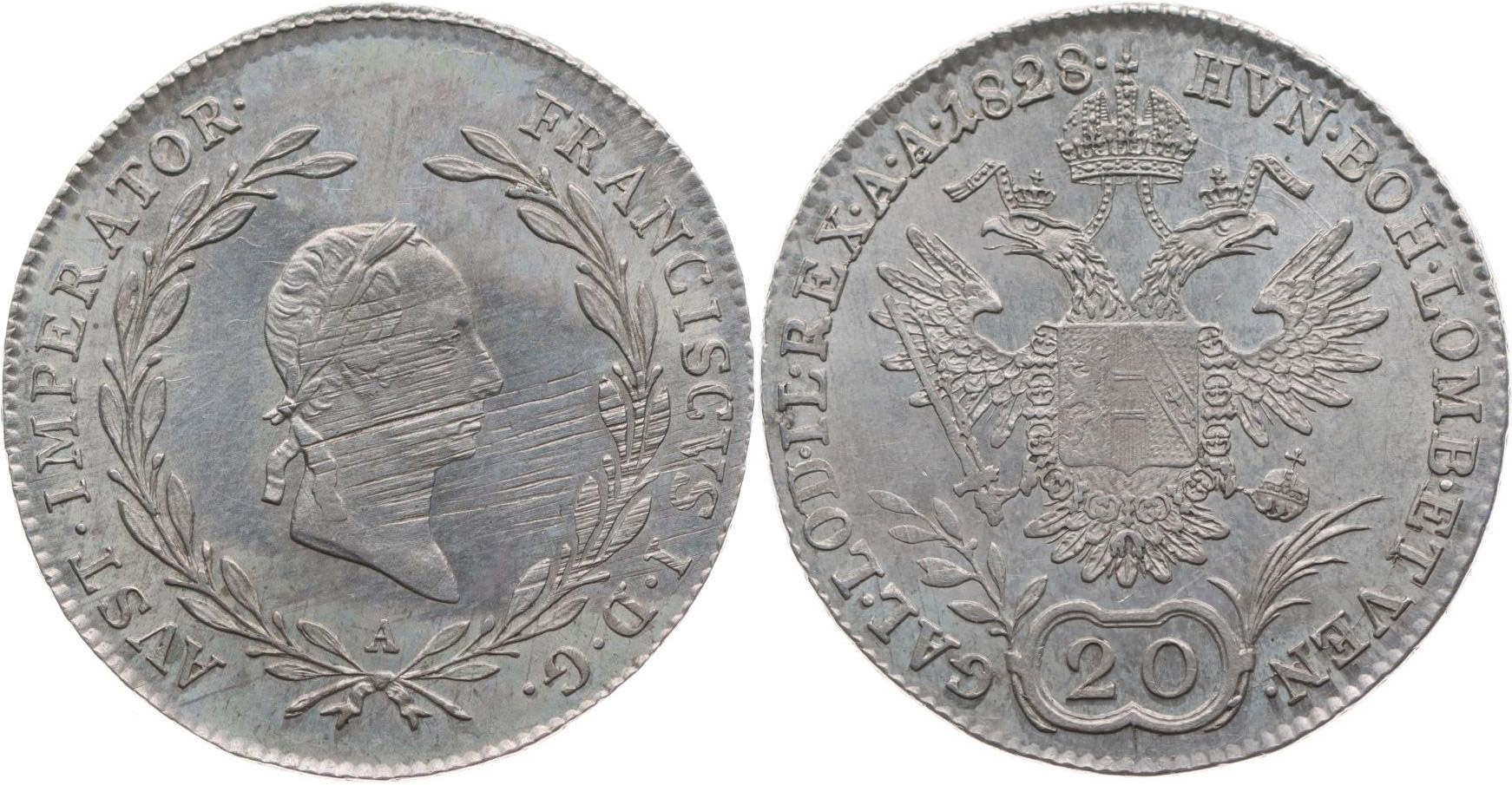 20 Krejcar 1828 A, Her.778_dr.just. v av.