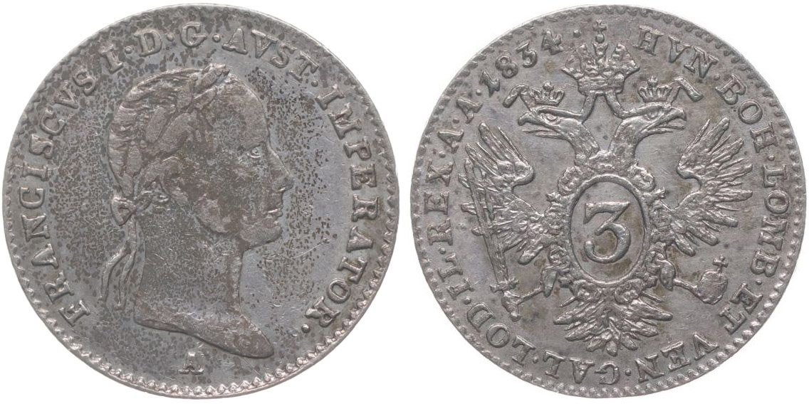 3 Krejcar 1834 A, Her.1011