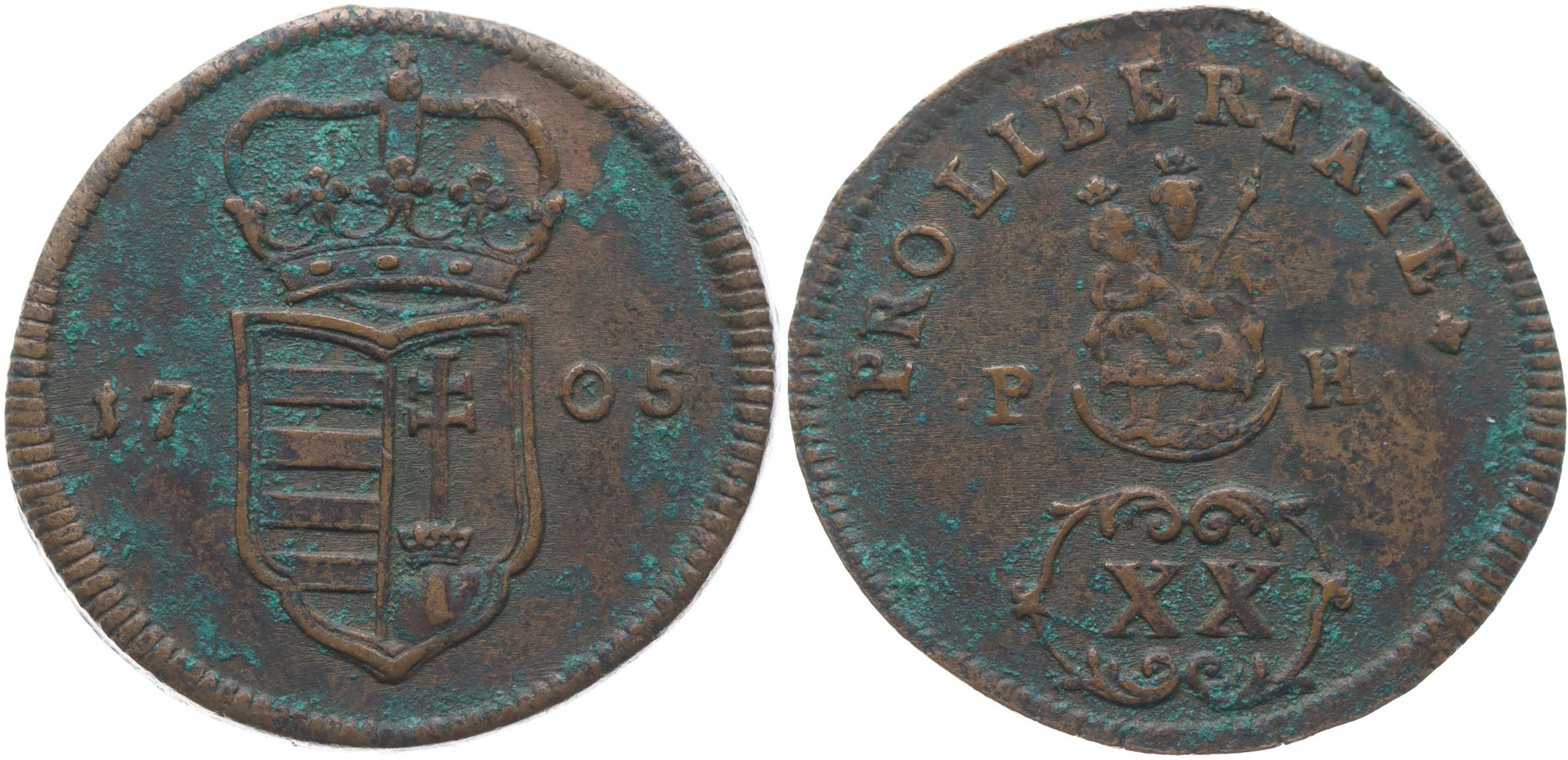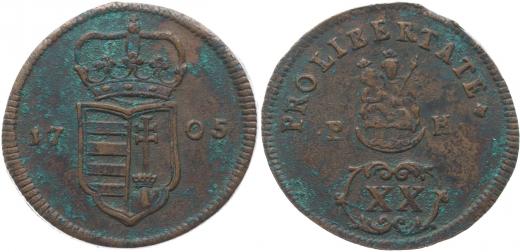 XX Poltura 1705 P.-H., bez značky mincovny, Husz.1529, Her.17