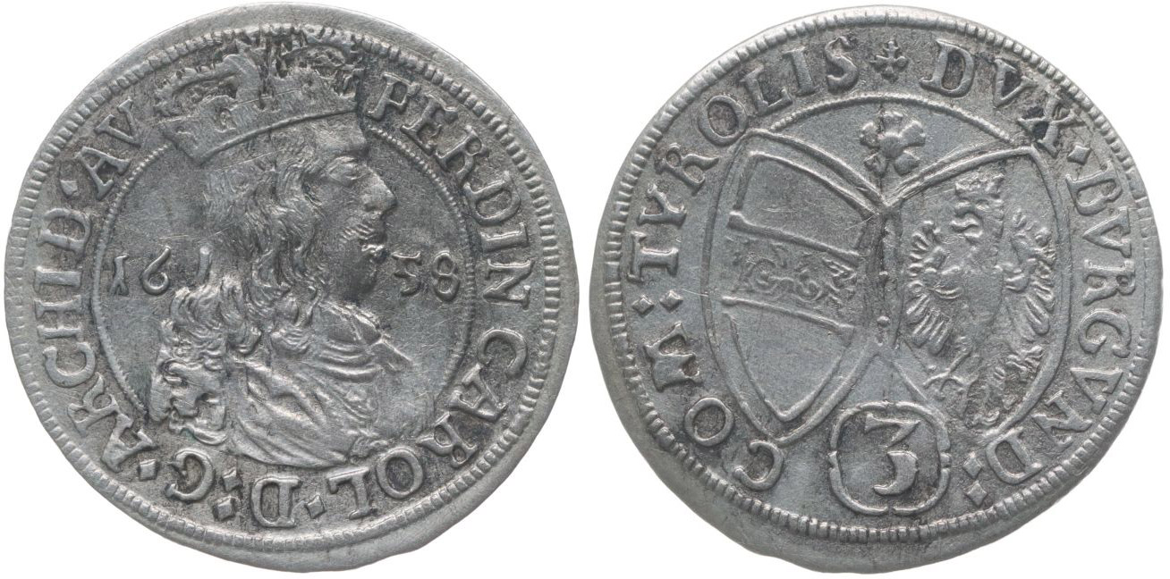 arc.Ferd.Karel - 3 Krejcar 1658, Hall, M-A.157 (tab.26/26), KM.829