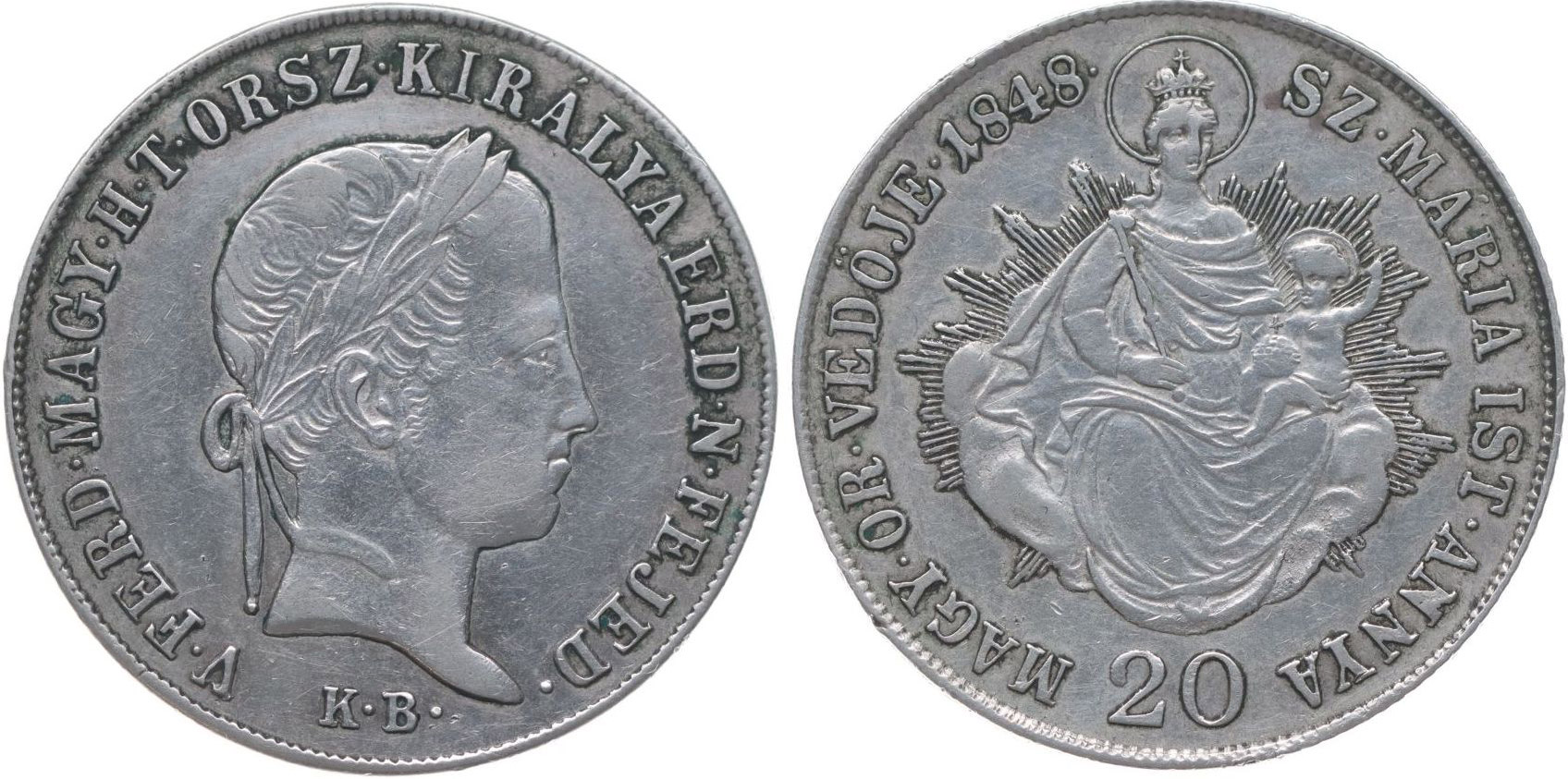 20 Krejcar 1848 KB - maďarský opis (revoluce)