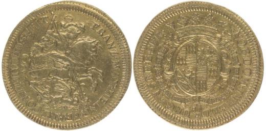 Dukát 1687, korunovaný knížecí znak, opis / Svatý Jiří na koni zabíjí draka, KM.135, Fr.1514_n.zvln. RR!