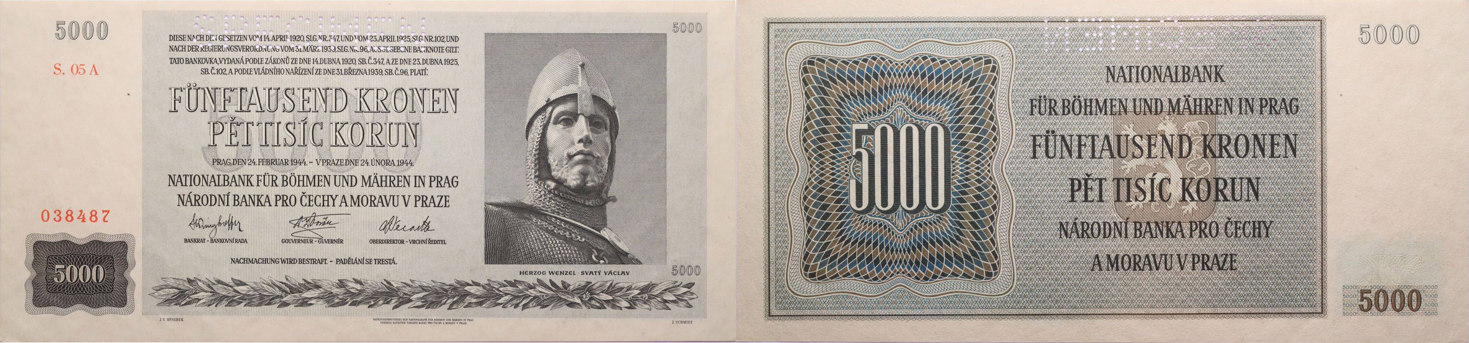 5000 Koruna 1944 - série 05A, B.41, Hejz.41S1_"SPECIMEN"