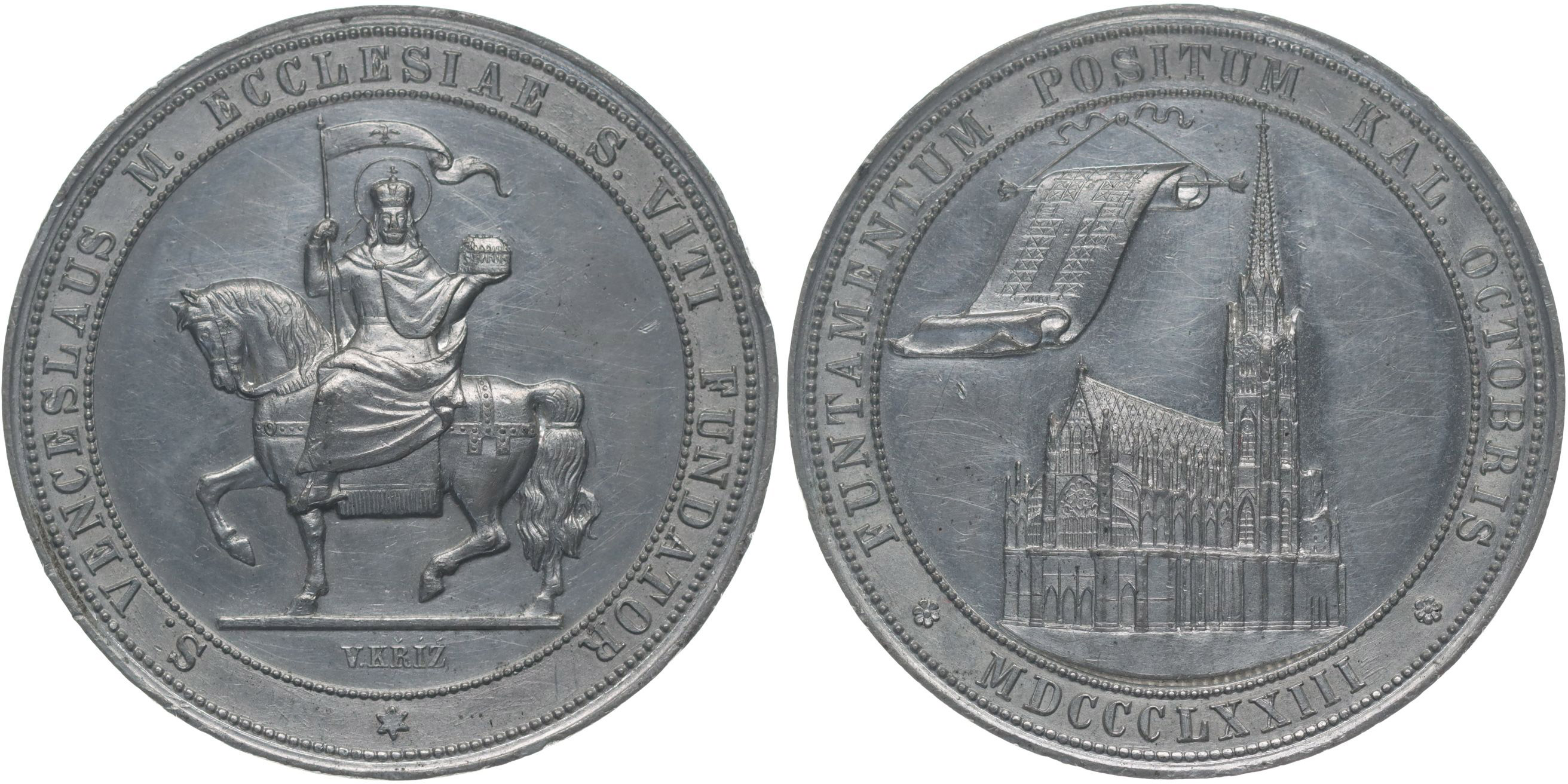 Dostavba chrámu Sv.Víta v Praze, 1873#Sn Sv.Václav na koni s ostatky Sv.Víta, opis / gotická podoba chrámu, opis, Sign., Sn 41 mm, MZČ.164/3